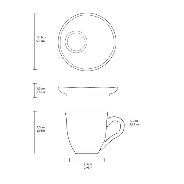Esta xícara de chá com pires une beleza estética e praticidade para o dia a dia, sendo perfeita para servir com charme e conforto. O conjunto valoriza o ritual do chá e é resistente o suficiente para uso frequente, tornando-se um diferencial na sua cozinha ou mesa posta.