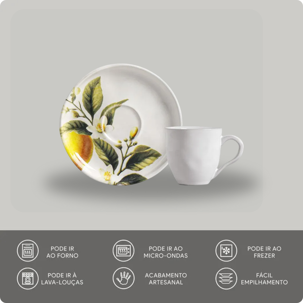 A Xícara de Café com Pires Porto Brasil Bio Limonata apresenta dimensões ideais para servir café com charme e funcionalidade. Seu material e acabamento oferecem segurança no uso diário, além de fácil higienização.